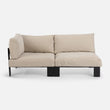 Bea Mombaers' for Serax sofa collection consists of a one-seater, a two-seater, a three-seater and a footstool in the same size as the one-seater. All models are produced in black aluminum for better maneuverability and equipped with soft cushions available in an indoor and outdoor version. By combining and configuring the various elements, you can create your own seating island without any restrictions.