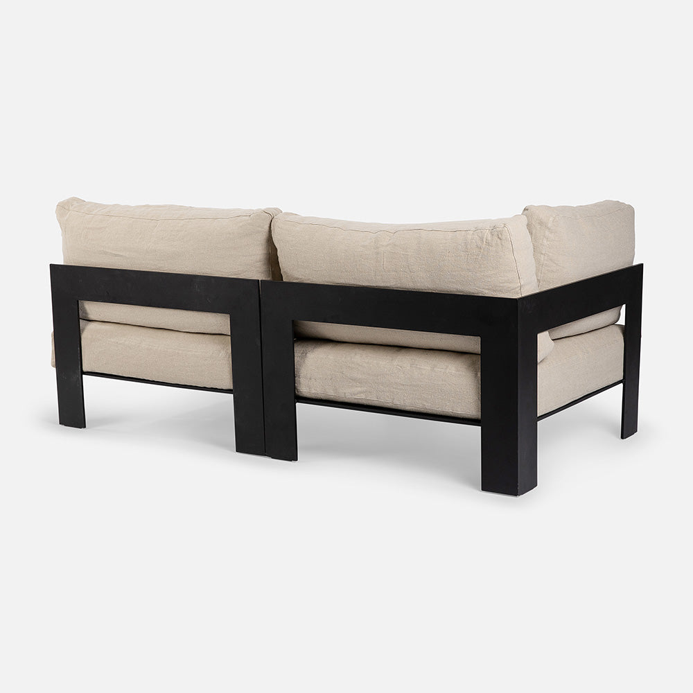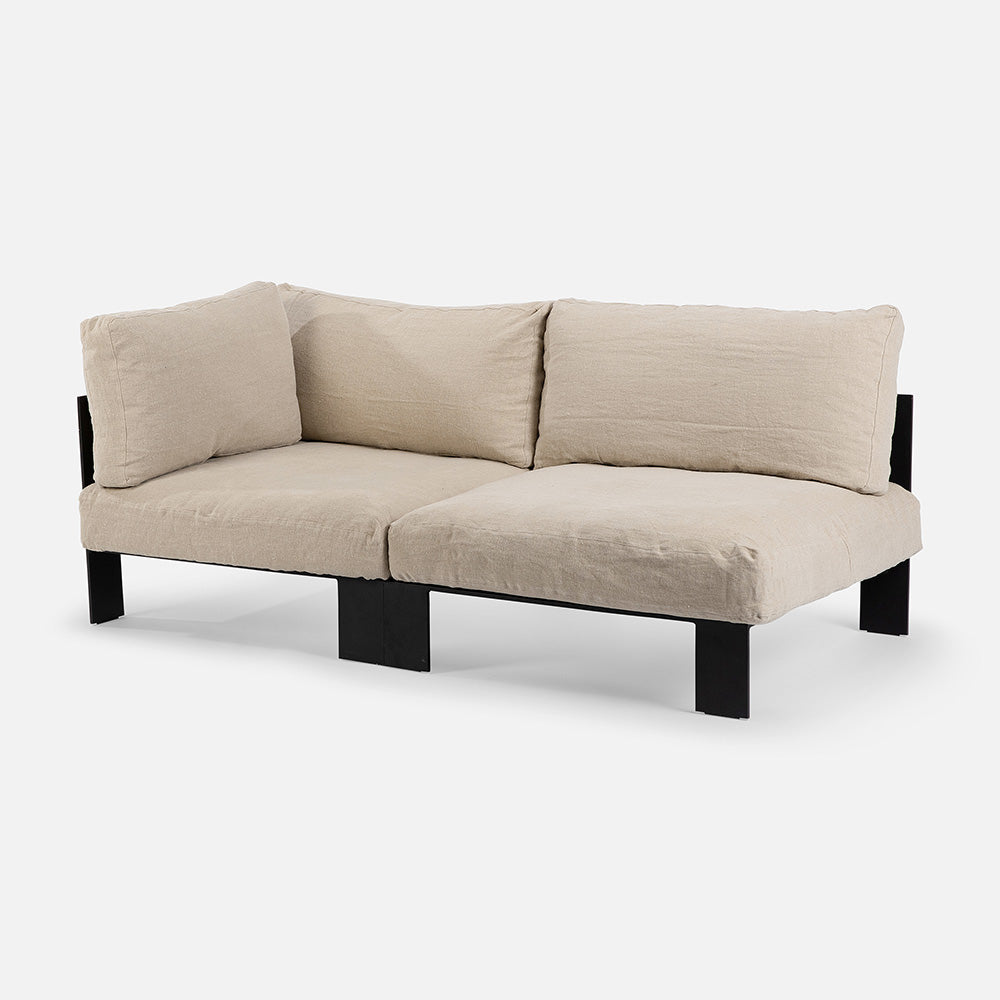 Corner seater and One seater of the Bea sofa in an indoor linen fabric in colour Sand.