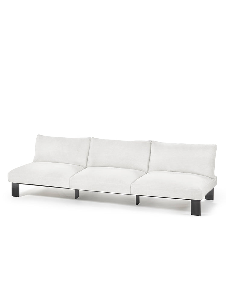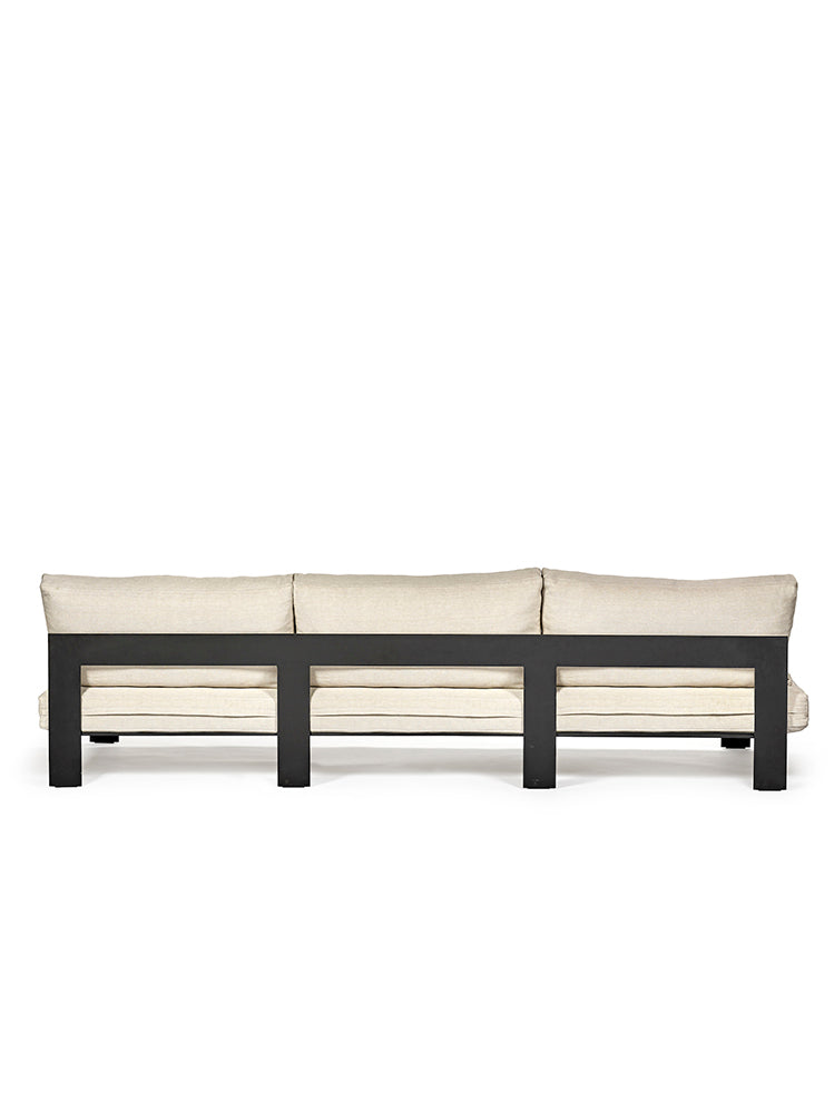 Bea Mombaers' for Serax sofa collection consists of a one-seater, a two-seater, a three-seater and a footstool in the same size as the one-seater. All models are produced in black aluminum for better maneuverability and equipped with soft cushions available in an indoor and outdoor version. By combining and configuring the various elements, you can create your own seating island without any restrictions.