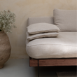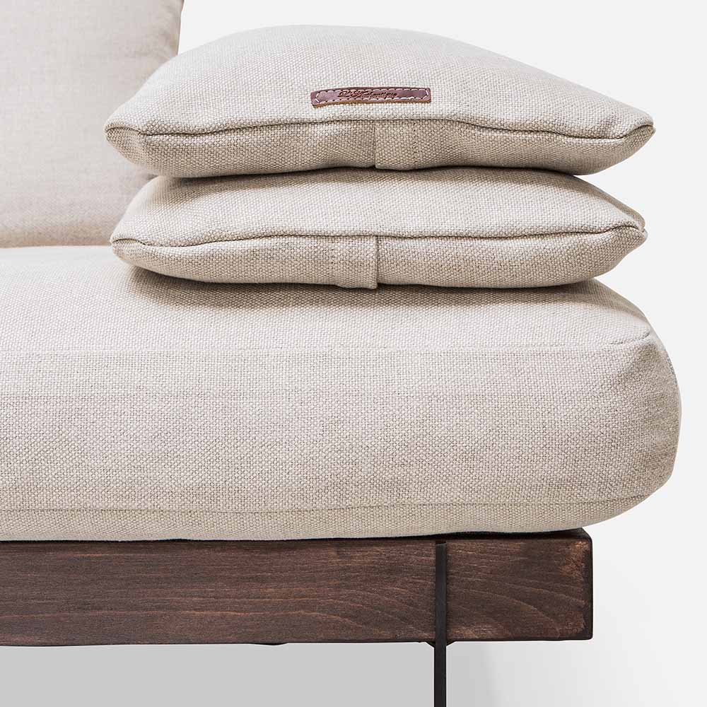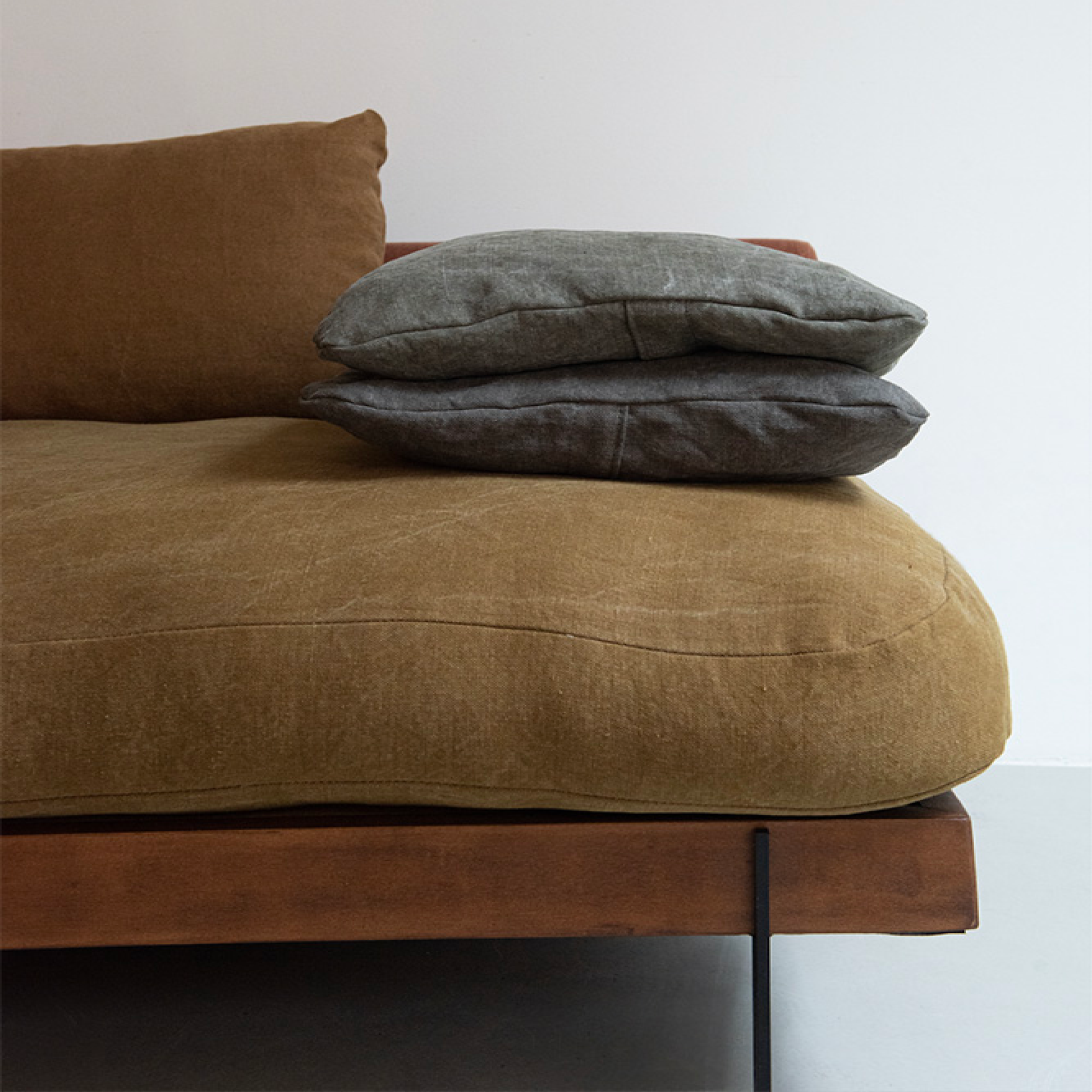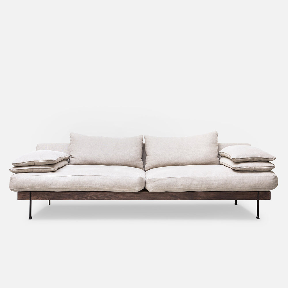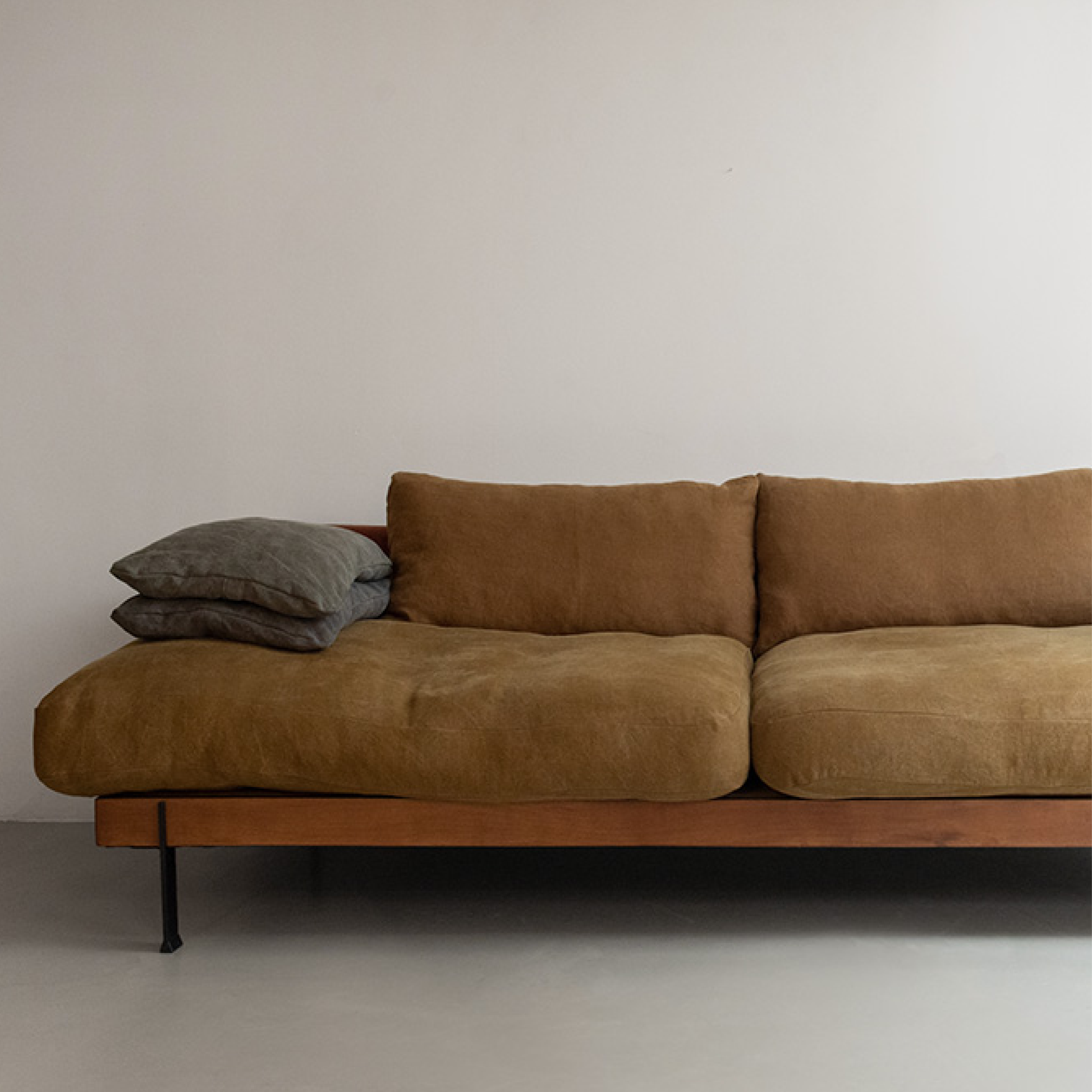 A pleasantly low and inviting design, featuring a platform of wood and steel with layers of cushioning, Malika is made to order. Available in various measurements and fabrics to your liking. Please contact us to make an appointment if you would like to view this sofa.