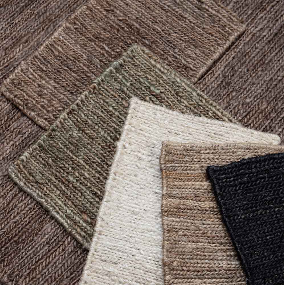 This rug is a gorgeous knit, made of hemp. The natural colour of the rug variations bring warmth and visual excitement to a room. Available in colours ivory, natural, green, brown and black in different measurements and custom-made on request.