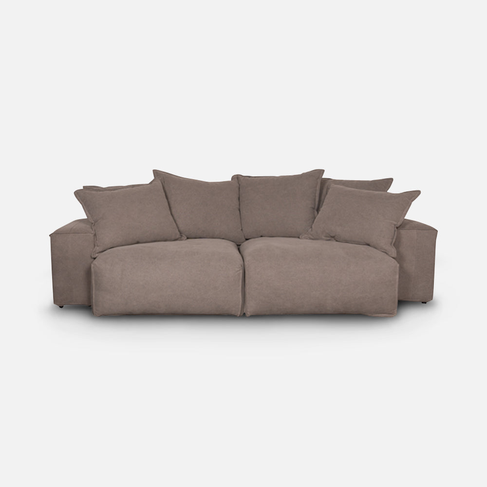 Solly is a sofa-shaped hug. With its abundance of plush pillows, it creates the perfect spot to cuddle up. The voluminous shape goes well with a simple, wide coffee table, or a selection of smaller stools and side tables.
